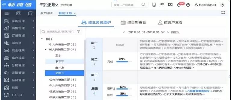 业务员的拜访应该有计划有方向的进行,而不是临时决定,这样可以提高拜访的效率。但是拜访轨迹怎样才能快速规划和分配呢?在T+Cloud【客户管理】里,就可以提前分配好下周要拜访的路线;在新增拜访计划中选择业务员对应的路线规划即可。而作为管理者,也不需要再一个个去督促业务员,管理者在T+Cloud里就能看到每个业务员的拜访完成情况。