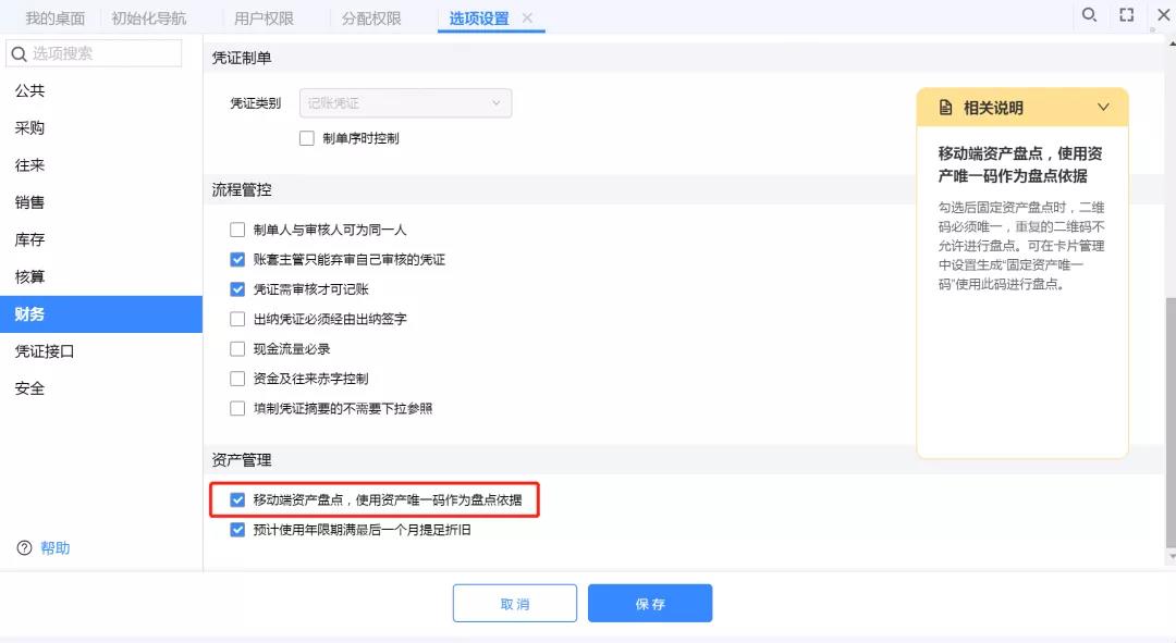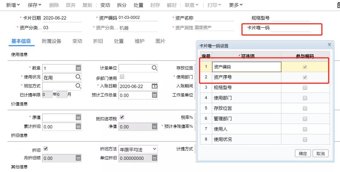 畅捷通T+资产管理,支持设置资产唯一码