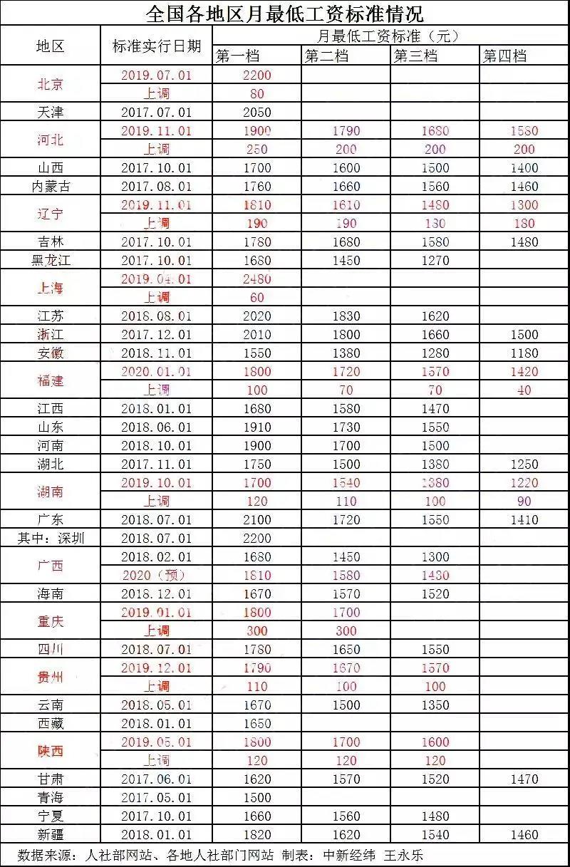 二、2020年最低工资标准出炉