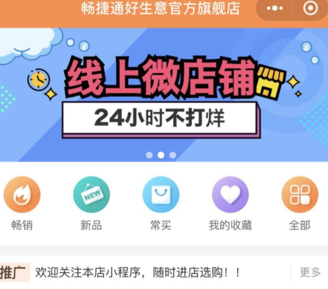 对于传统商家来说,进货和销售环节都需要老板亲力亲为,不仅消耗了大量的时间和人力,还可能很难提升店铺的利润率。对此,老板可以通过畅捷通好生意开启线上微店铺,自建商城24小时无接触做生意,在线维系新老客户关系。