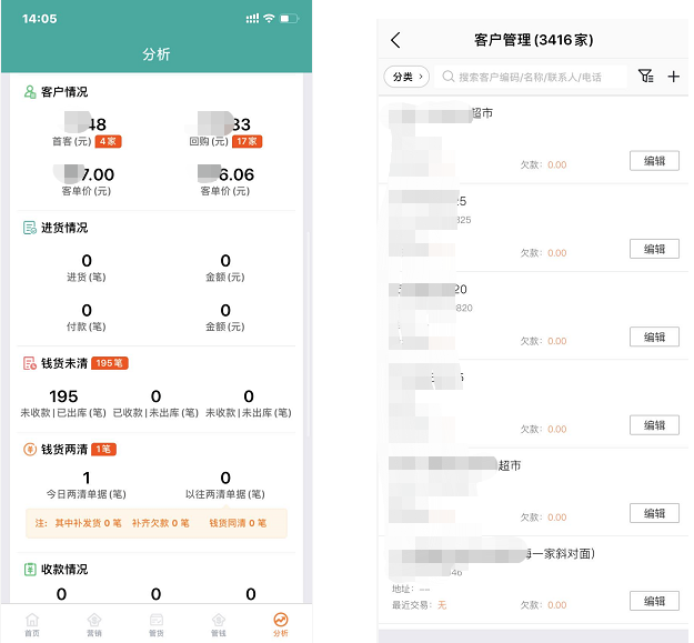 有了畅捷通软件好生意的手机旺铺的客户全面管理,老板直接掌握终端客户,防止业务员离职导致的客户流失。老板在【手机旺铺】-客户数据分析功能中实时掌握客户交易情况,了解不同分层客户的销售情况,点击数据可以了解客户每单的销售额度以及欠款情况。