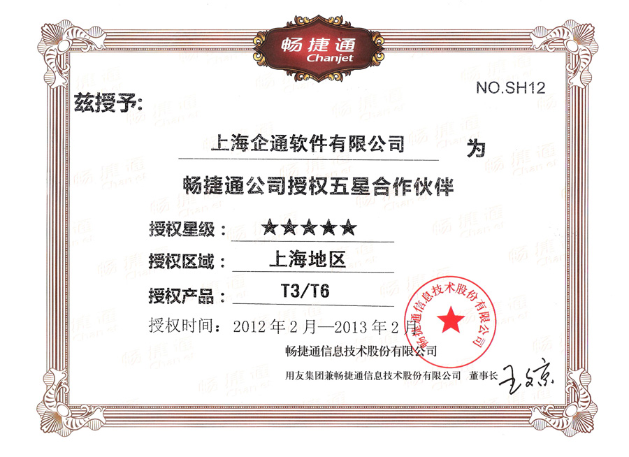 2012年畅捷通T3T6五星授权