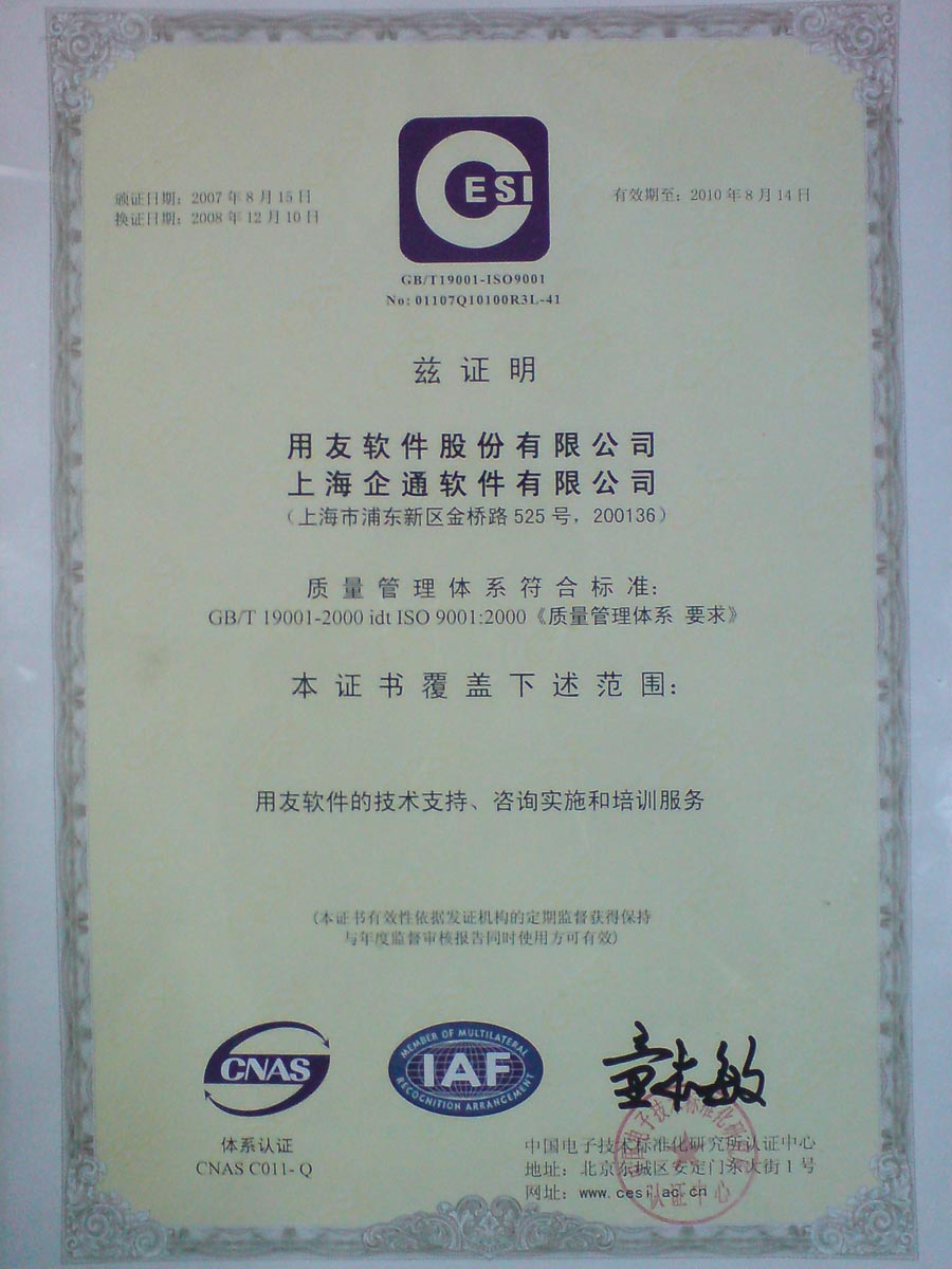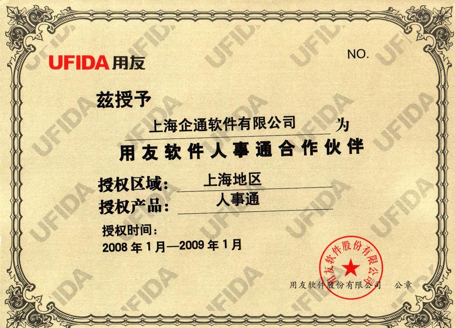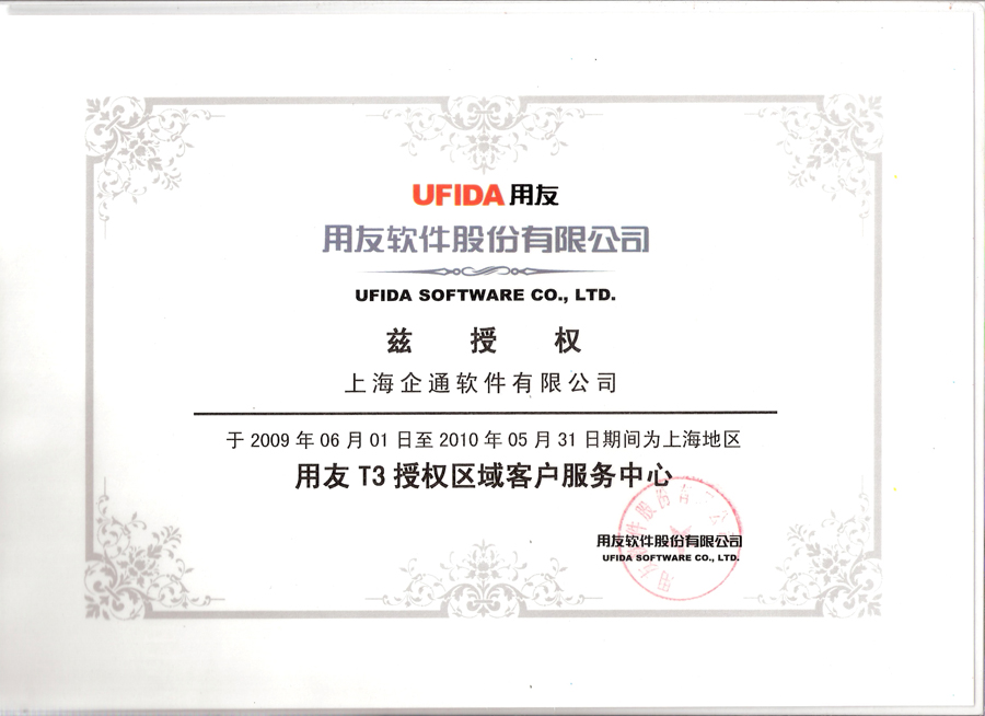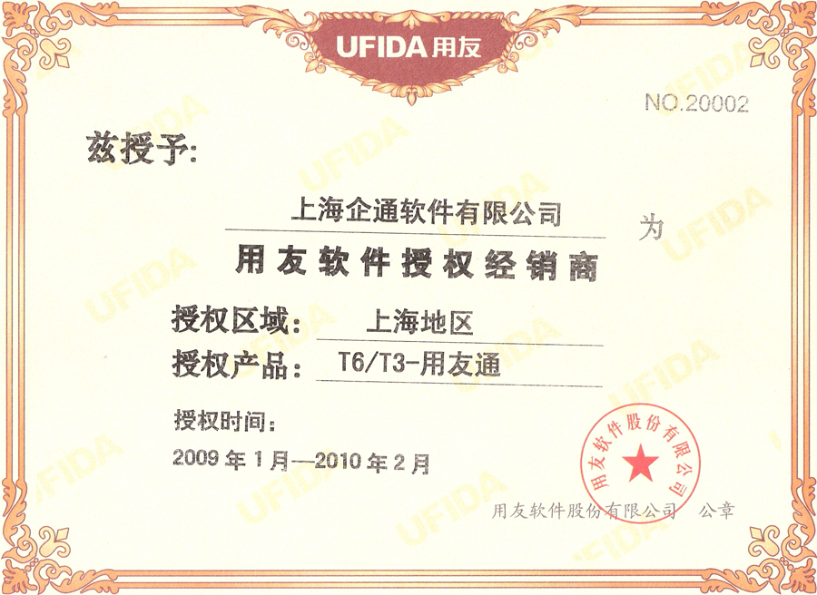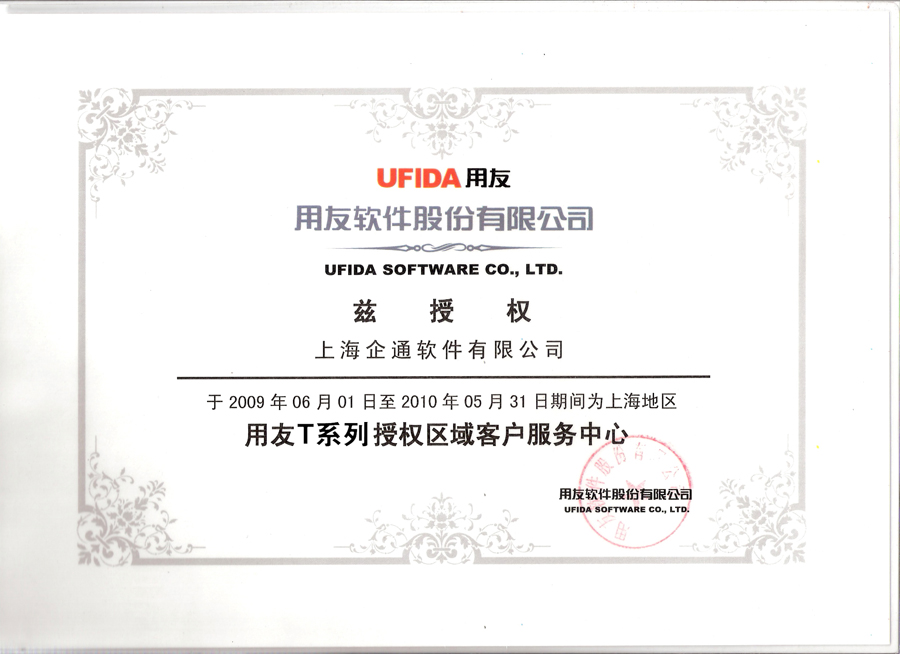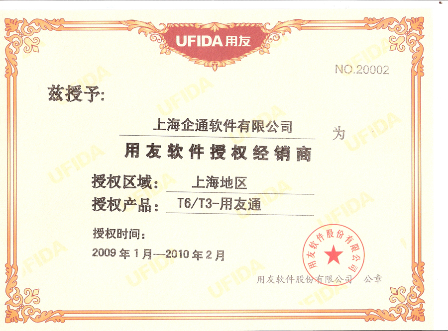 2009年用友小型授权证书