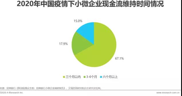 在复工复产时,一些小微企业面临消费难启动、物流难打通、客户难跑动等新挑战。据艾瑞咨询的数据显示,疫情使多数小微面临生存危机,67.1%的小微企业预计现金流无法维持三个月以上,只有15%的小微企业现金流可以维持6个月以上。