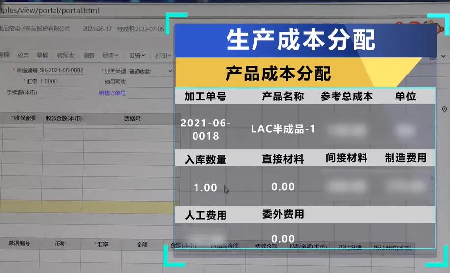 成本费用核算对于生产制造企业来说非常重要,康尼格一共有20多类3000多个品种的物料。康尼格依据系统实时归集材料、制造以及人工等费用,再结合采购和销售费用,确保成本核算无误。
